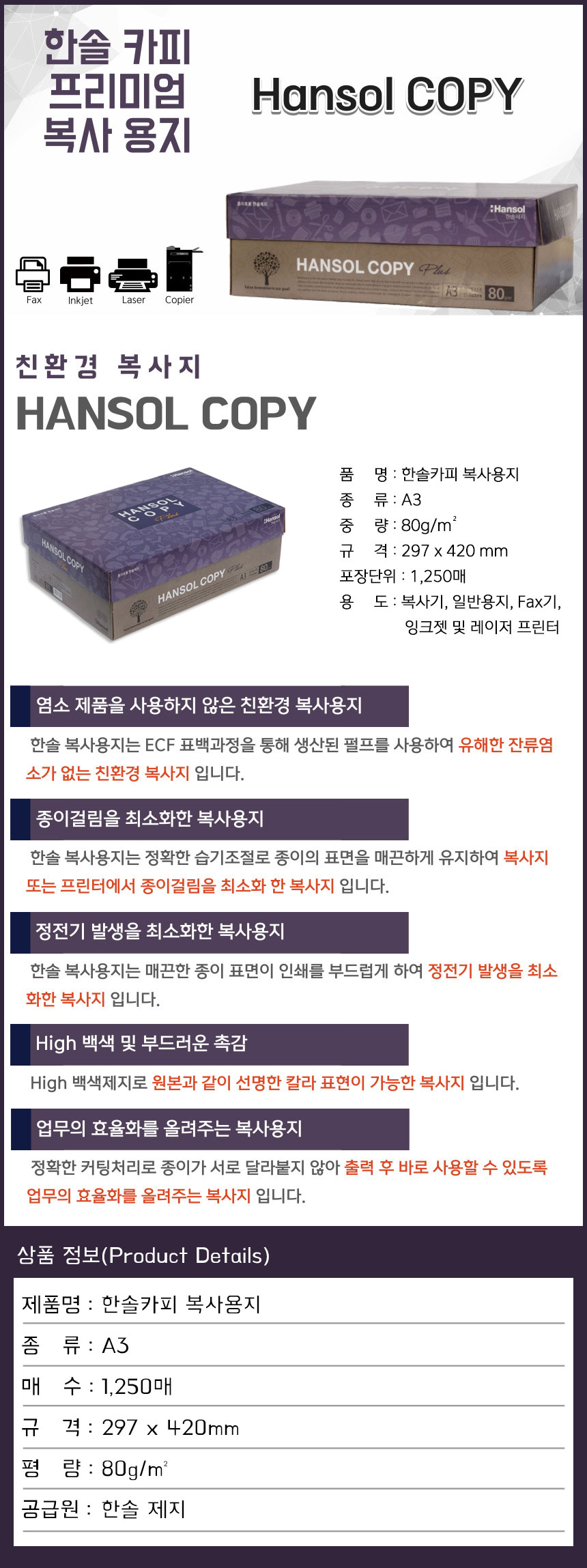 한솔 복사용지 80g A3 (1Box)