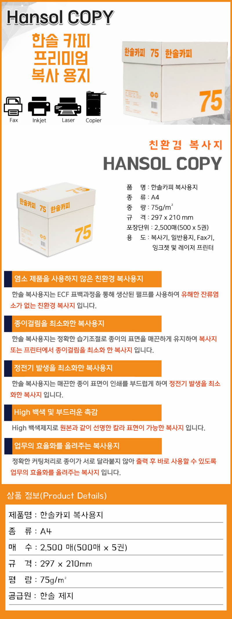 | 품명 및 모델명 | 박스복사용지75g(210*297) |