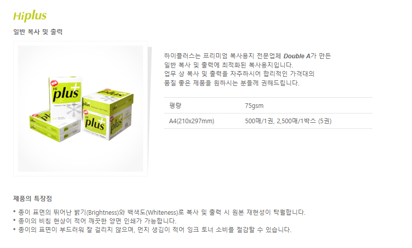 | 품명 및 모델명 | NEW 하이플러스 복사용지 75g A4 (1Box) |