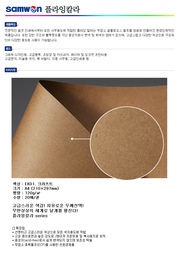 삼원)플라잉칼라(EK01.크라프트/A4/120g/20매)