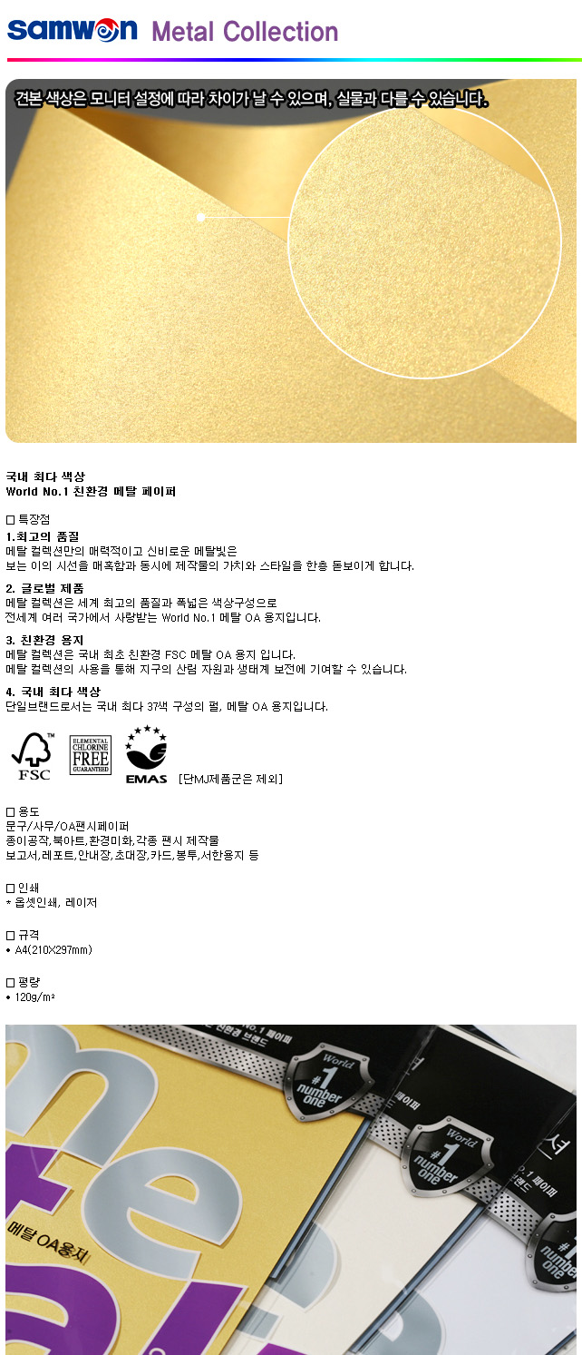 삼원)메탈OA용지(MJ18.멜로우옐로/A4/120g/10매)