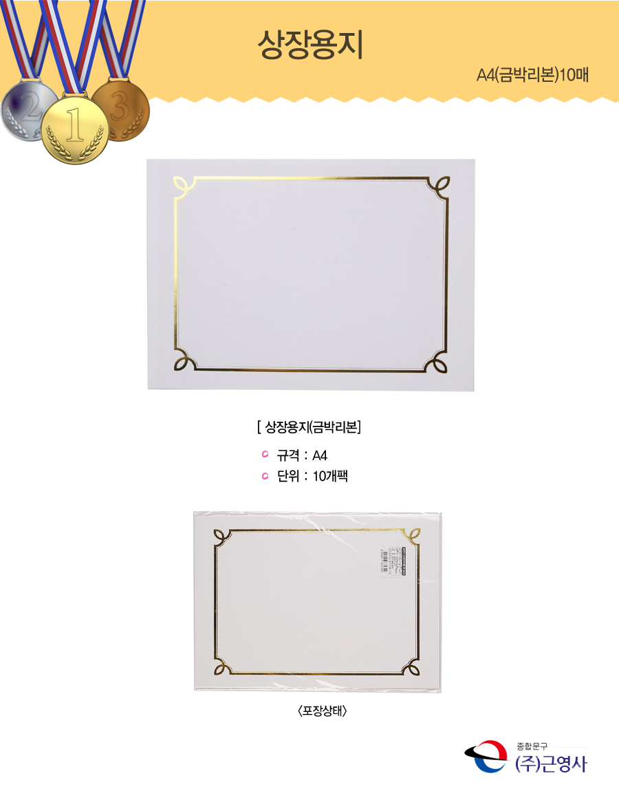 | 품명 및 모델명 | 근영 금박테두리 상장용지 (10매,리본형) |