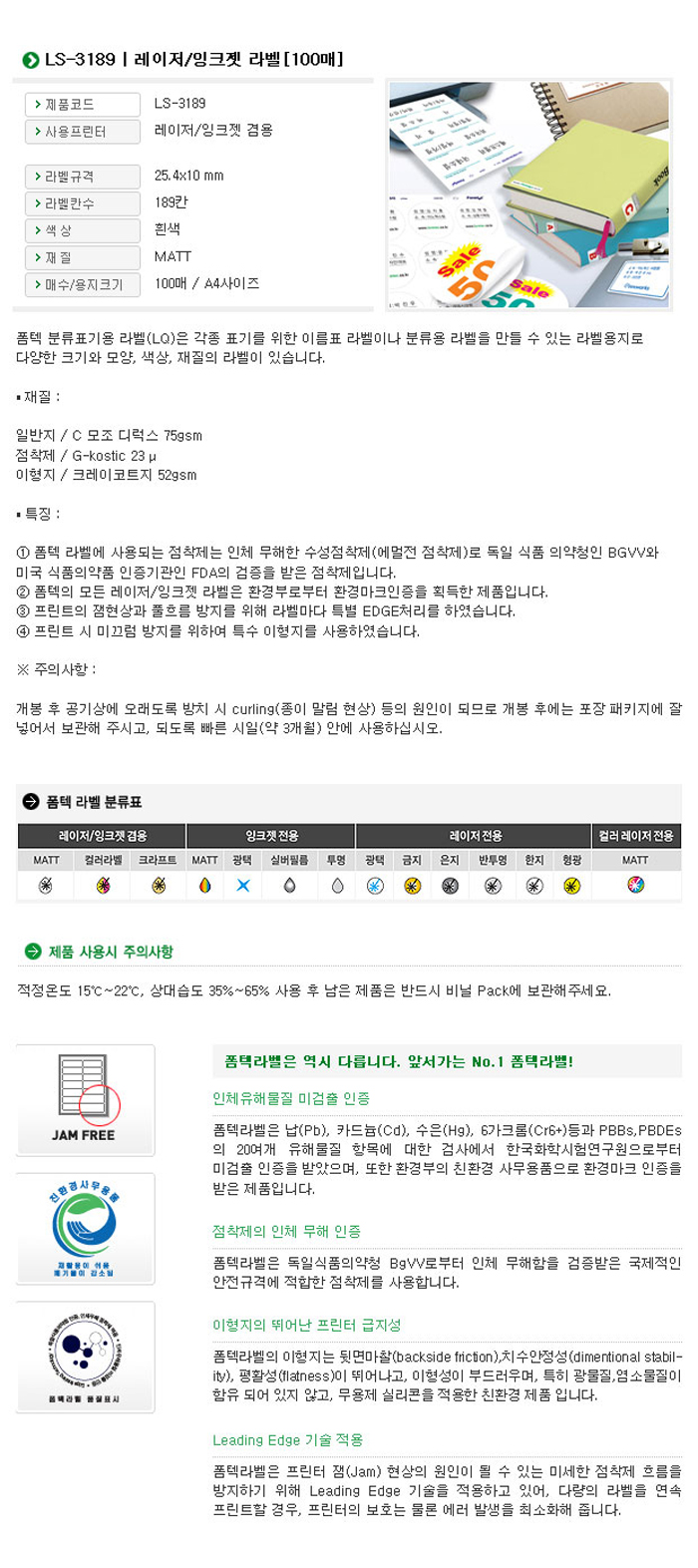 폼텍 분류표기용 라벨 LS-3189 (189칸,100매)