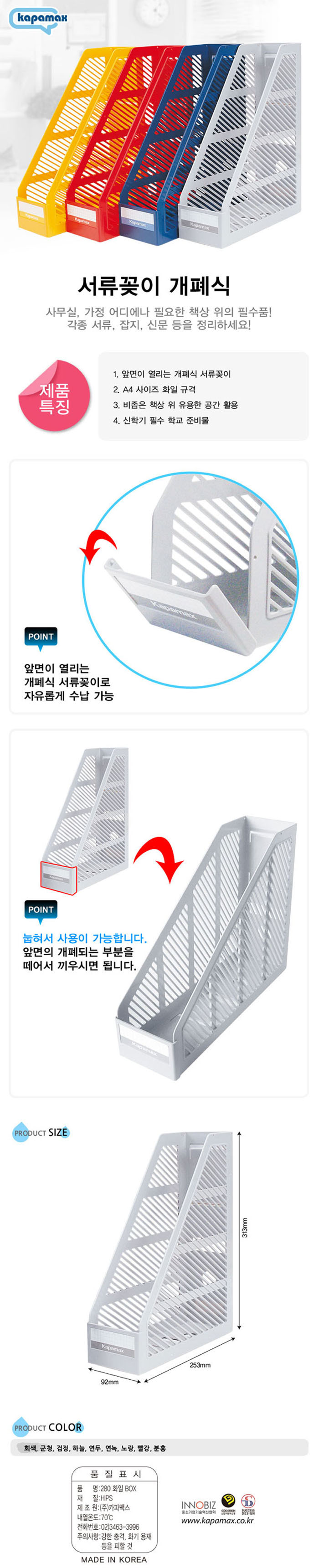 | 품명 및 모델명 | 카파맥스 서류꽂이 (개폐식,흑색) |