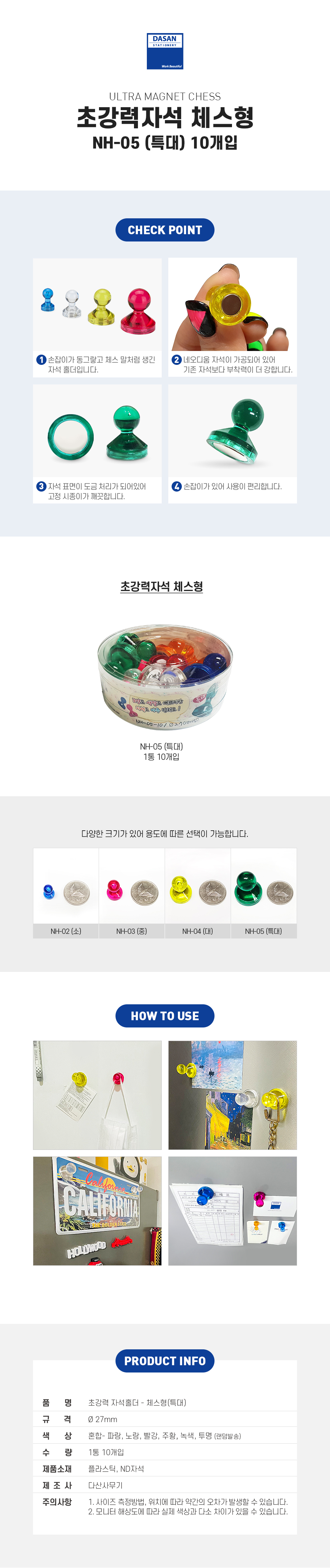 다산)초강력자석(체스형/특대/NH-05/10개입)28mm