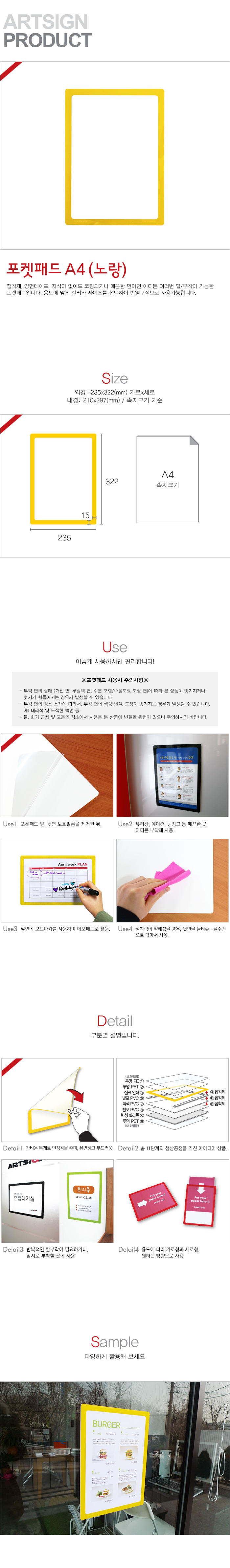 [MRO]아트사인 포켓패드(노랑) A4 210*297 (1개입) PP0005 (8834)