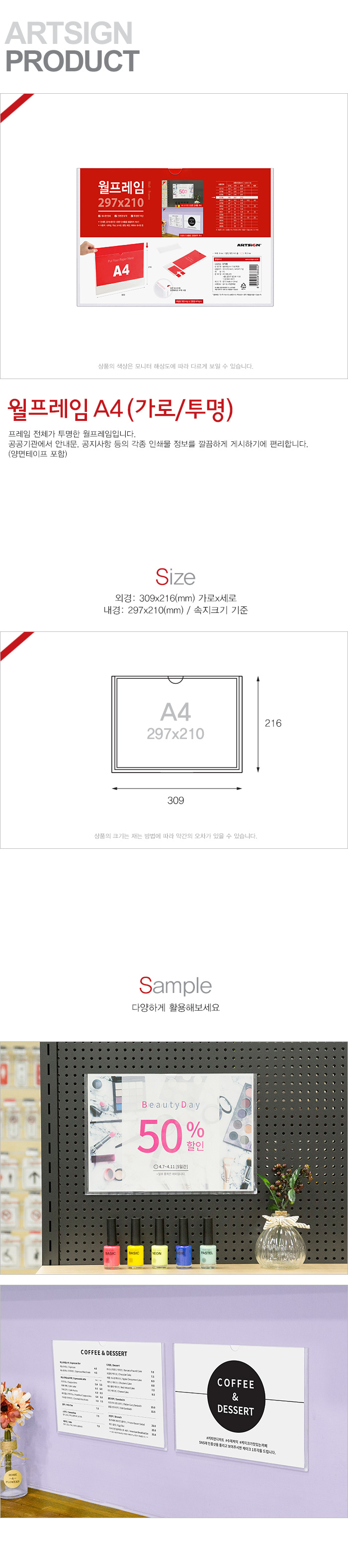 아트사인)월프레임A4(가로/투명/297*210/0799)