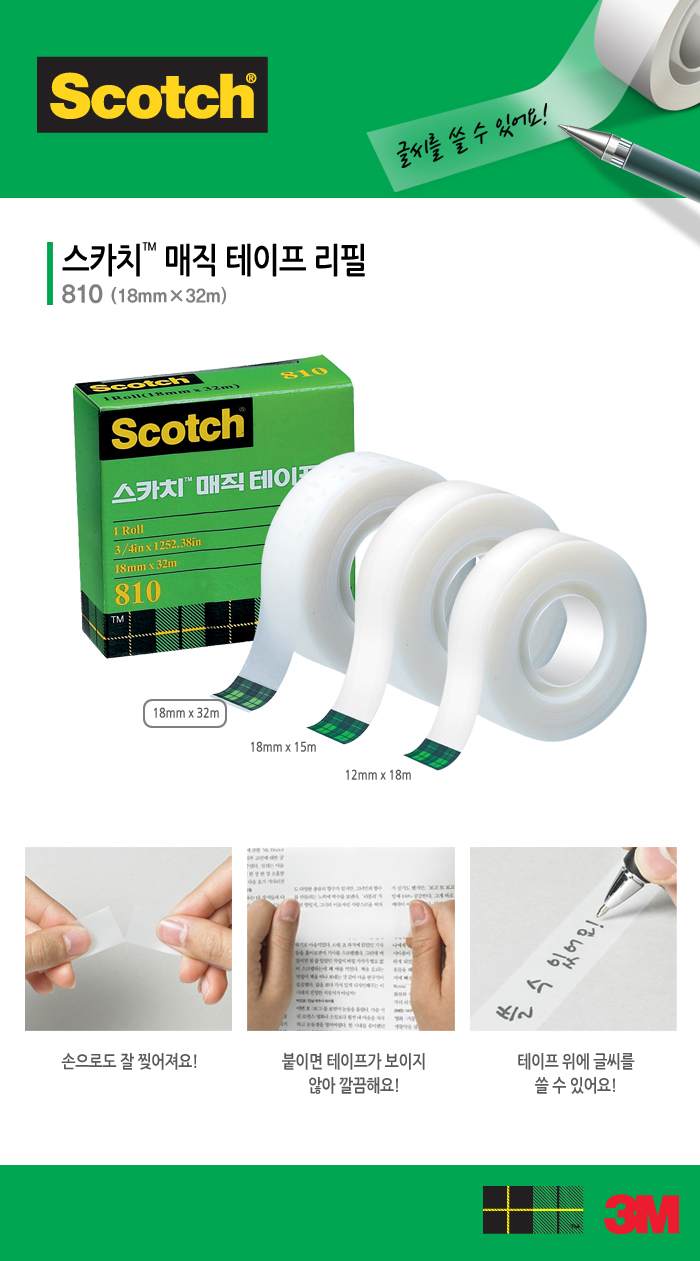 ǰ¸í ¹× ¸ðµ¨¸í | 3M ½ºÄ«Ä¡ ¸ÅÁ÷Å×ÀÌÇÁ #810 ¸®ÇÊ (18mm x 32m) |
