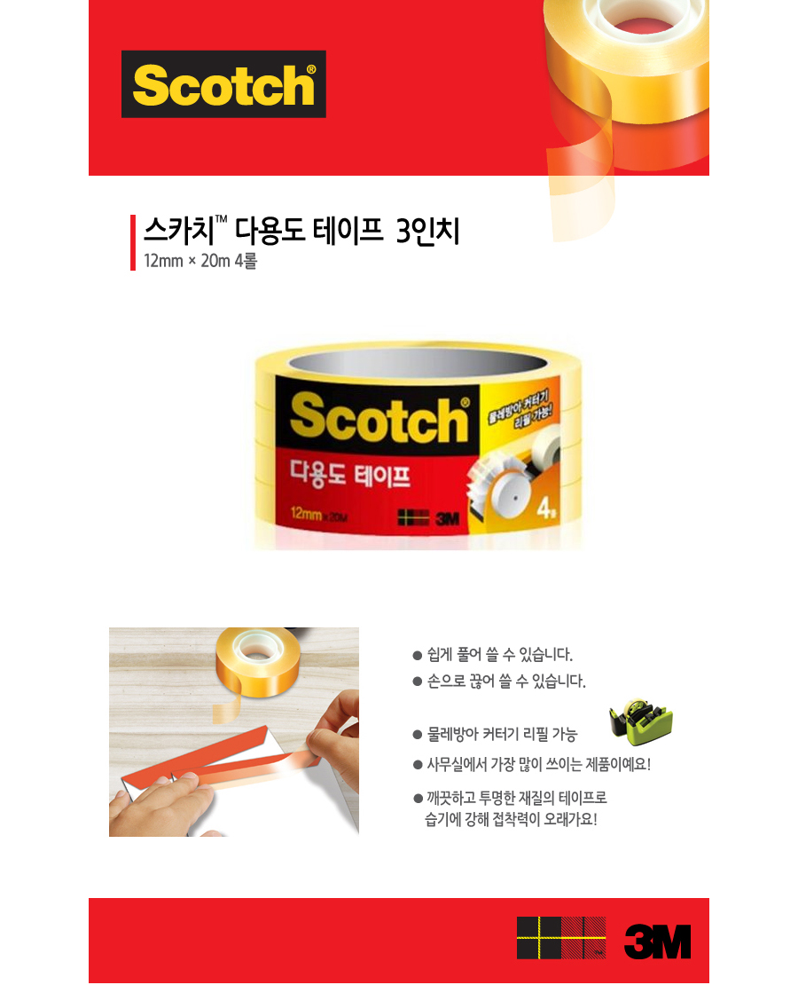 3M 스카치™ 다용도 테이프 리필 3인치 508 (12x20) 4롤