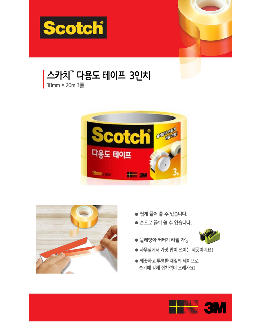 3M 스카치™ 다용도 테이프 리필 3인치 508 (18x20) 3롤