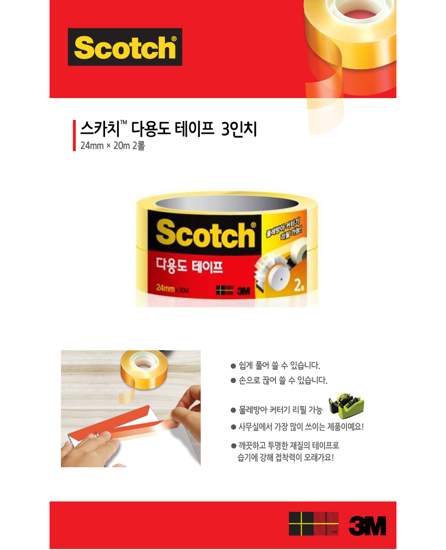3M 스카치™ 다용도 테이프 리필 3인치 508 (24x20) 2롤