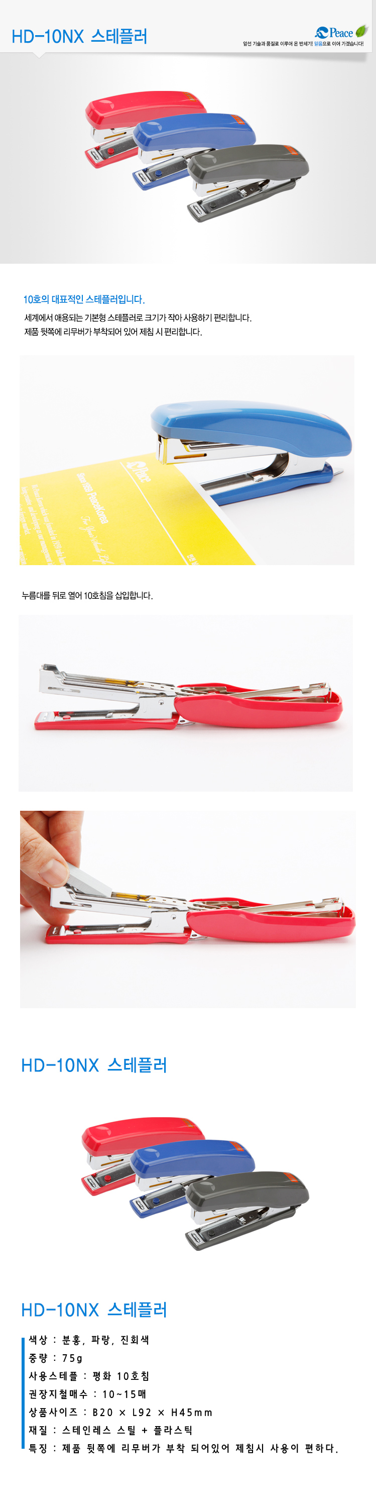 | 품명 및 모델명 | MAX 스테플러 HD-10NX(파랑,10호침,20매철가능) |