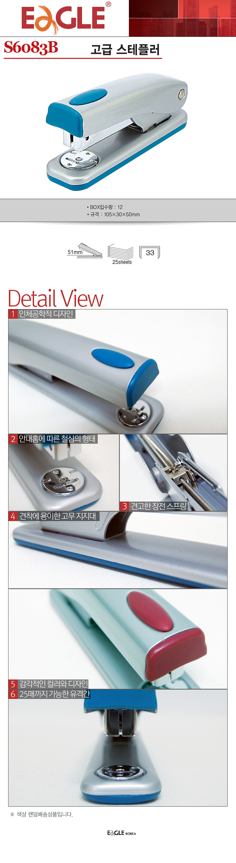 | 품명 및 모델명 | 이글코리아 스테플러 (S6083B,소,33호침,20매) |