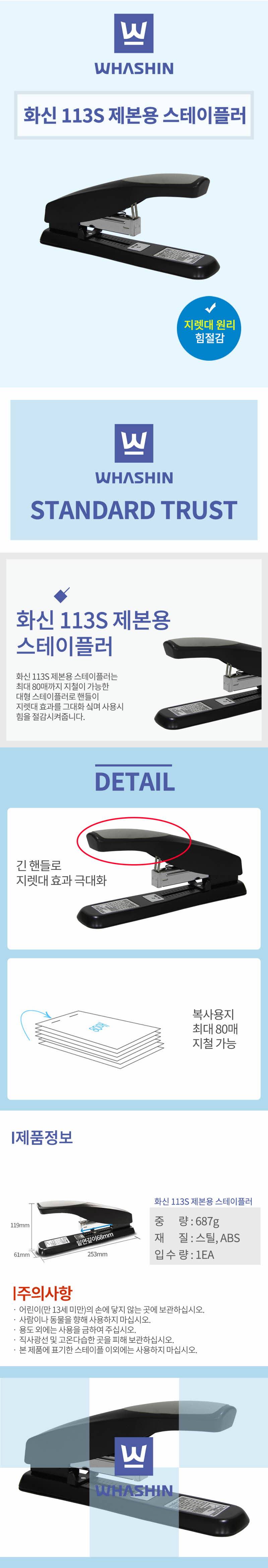 화신 스테플러 제본용 WS-113S (H-13호침 / 100매 철가능)