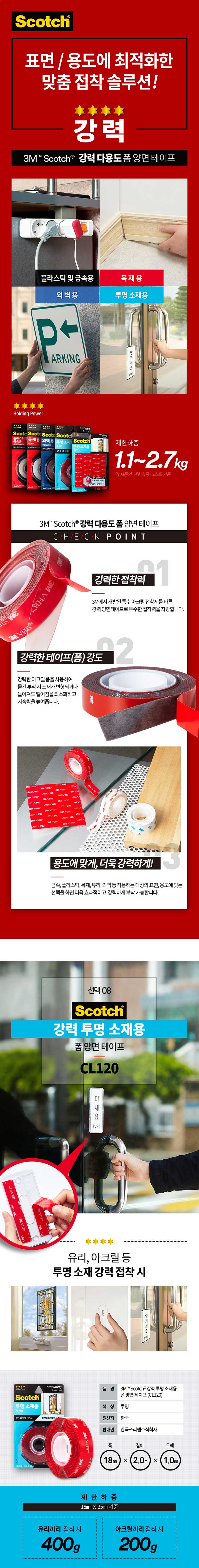 3M)스카치 강력 투명 소재용 폼 양면테이프 (CL120)