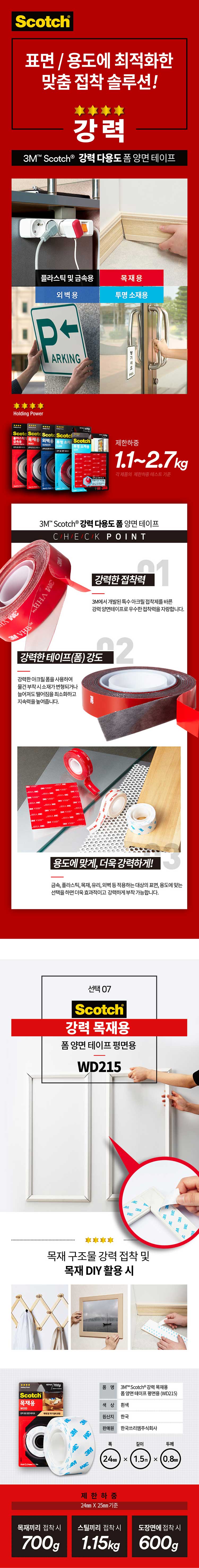 3M)스카치 강력 목재용 폼 양면테이프 (WD215)