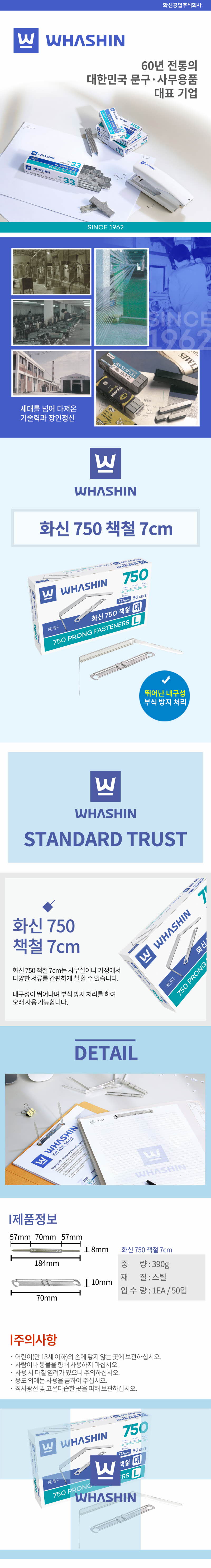| 품명 및 모델명 | 화신 책철 750 (대,70mm,50조/SET) |