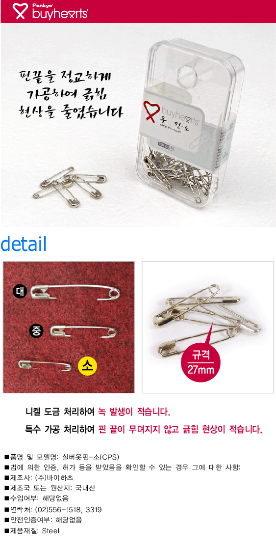| 품명 및 모델명 | 판교 옷핀 (소,CP-1200) |