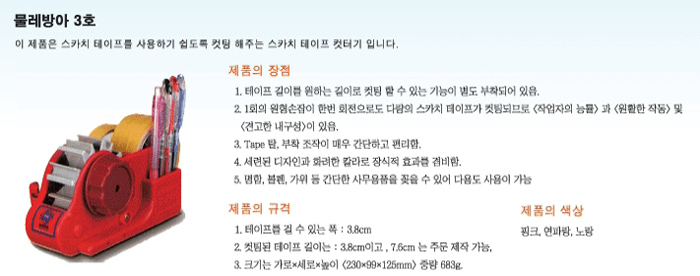 | 품명 및 모델명 | 물레방아 테이프 컷터기 3호 |