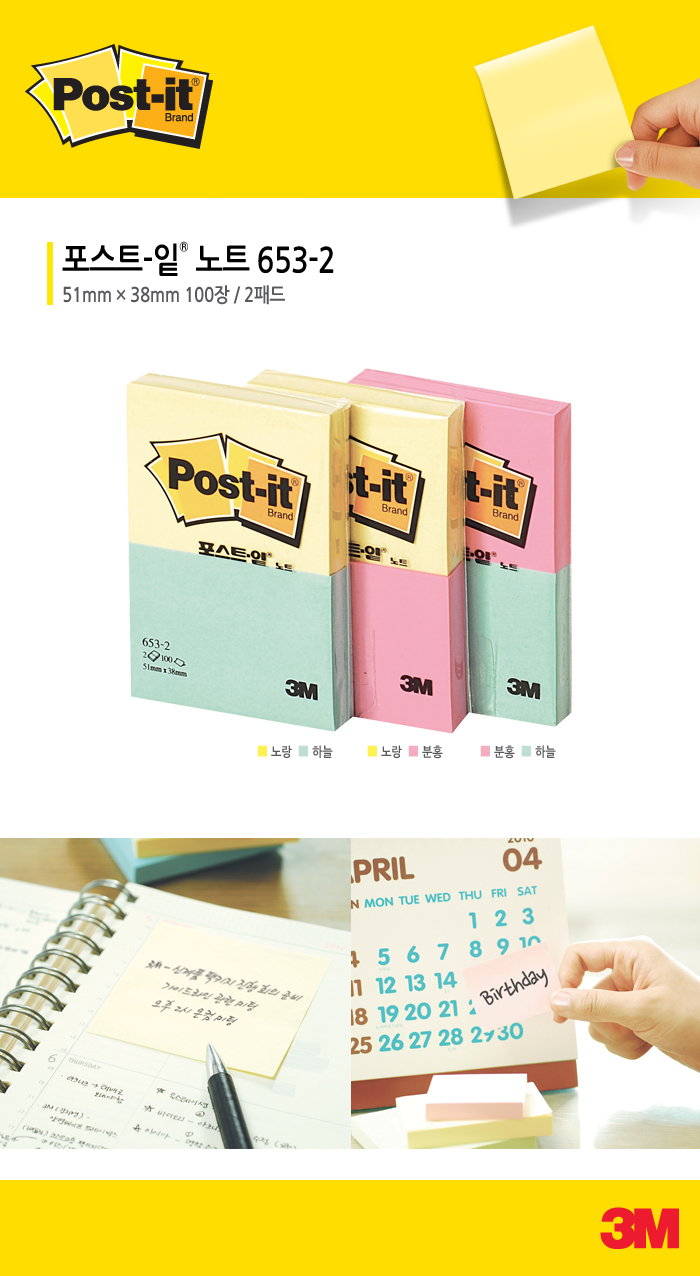 | 품명 및 모델명 | 3M 일반Post-it #653-2 (분홍/하늘, 51x38mm, 100매x2패드) |