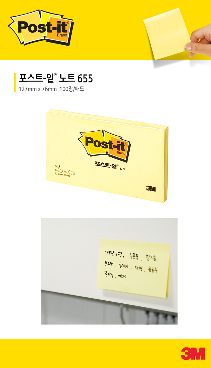 | 품명 및 모델명 | 3M 일반Post-it #655 (노랑, 127x76mm, 100매) |