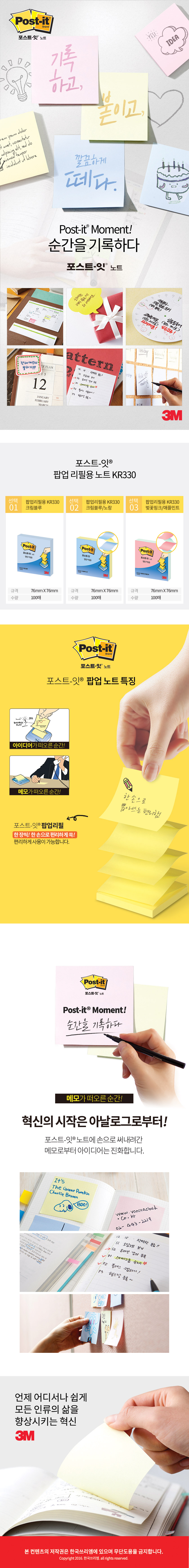 ǰ¸í ¹× ¸ðµ¨¸í | 3M ÆË¾÷ Post-it ³ëÆ®¸®ÇÊ KR-330 (ÇÎÅ©/¶óÀÓ, 76x76mm, 100¸Å) |