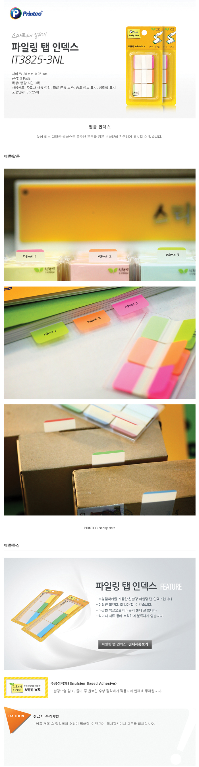 IT3825-3NL 스티키노트 인덱스탭 형광라인3색 38*25 25매