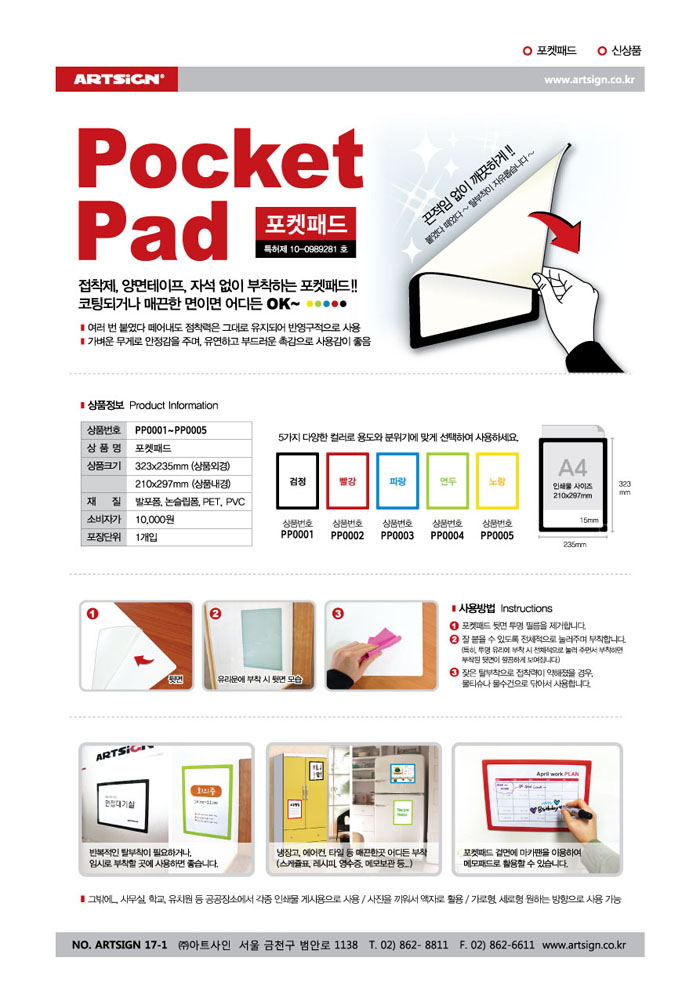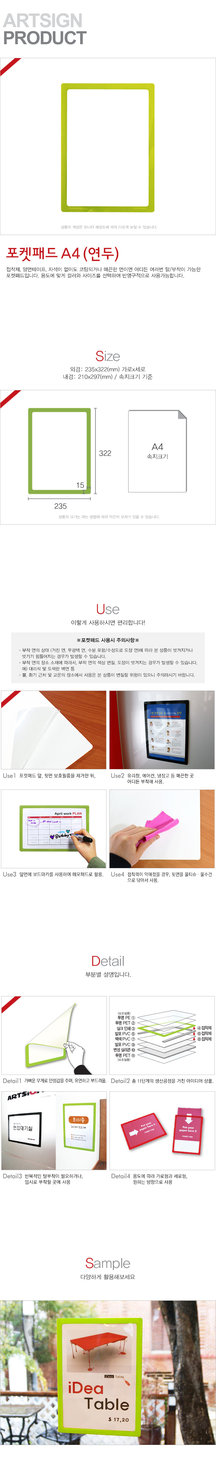 아트사인)포켓패드(연두/A4/8833) 속지규격:210-297