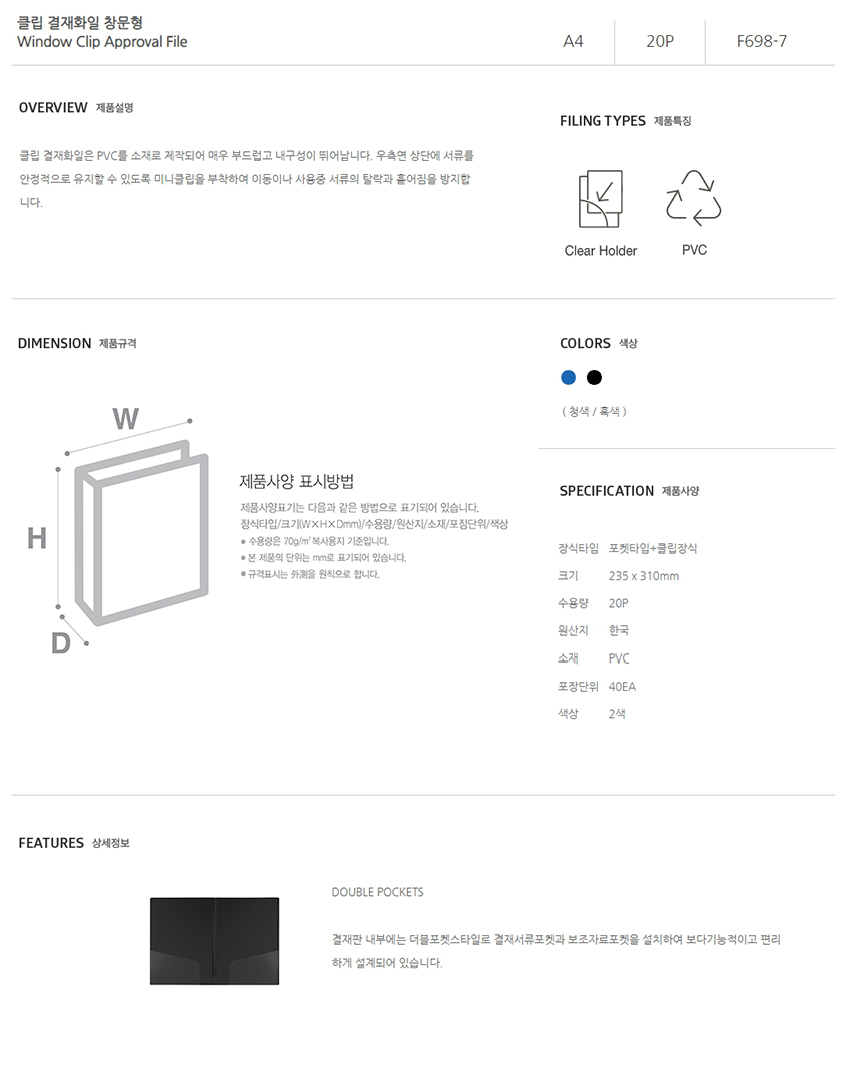 | 품명 및 모델명 | 문화 결재판 A4 (흑색,창유,PP) F698 |