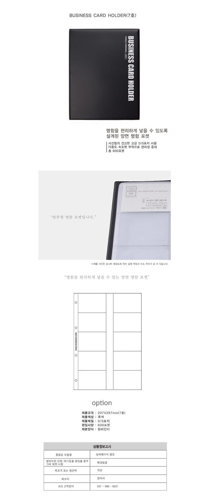 | 품명 및 모델명 | 양지사 명함첩 7호 (600매,흑색) |