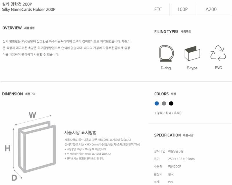 | 품명 및 모델명 | 문화 명함첩 A200 (200매,흑색,PVC) |