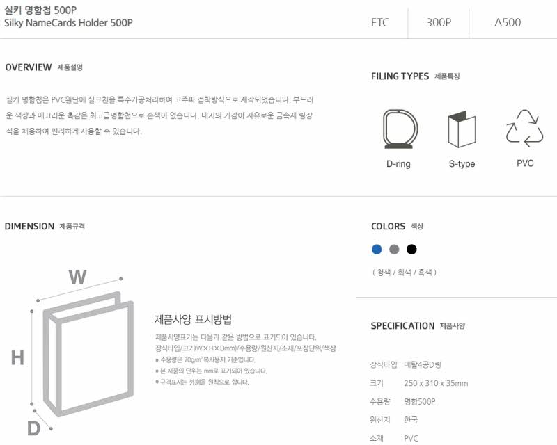 | 품명 및 모델명 | 문화 명함첩 A500 (500매,흑색,SILK PVC) |