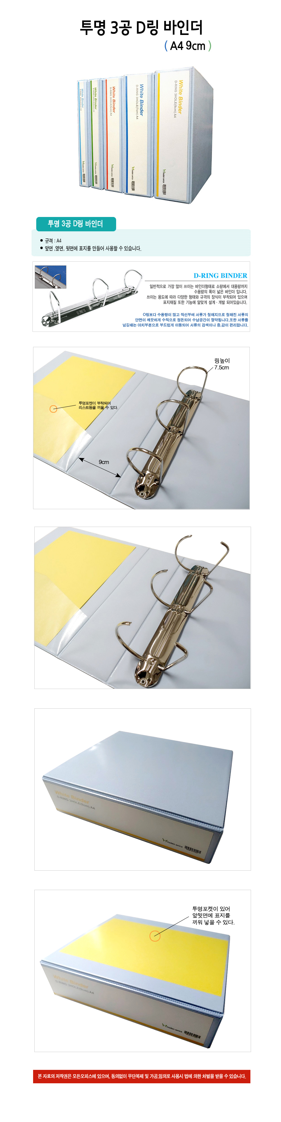 모든오피스)백색투명3공D링바인더(A4/9cm)