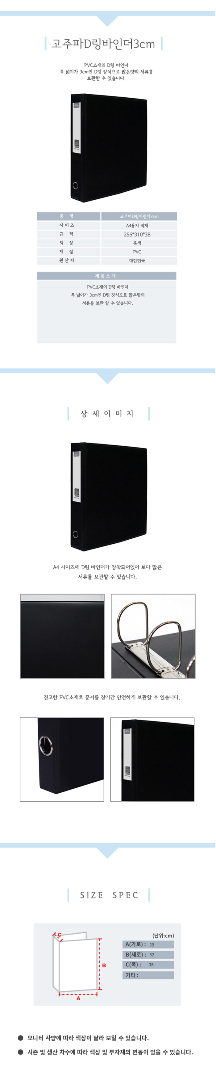 모든오피스)고주파3공D링바인더(PP/A4/3cm/흑색)