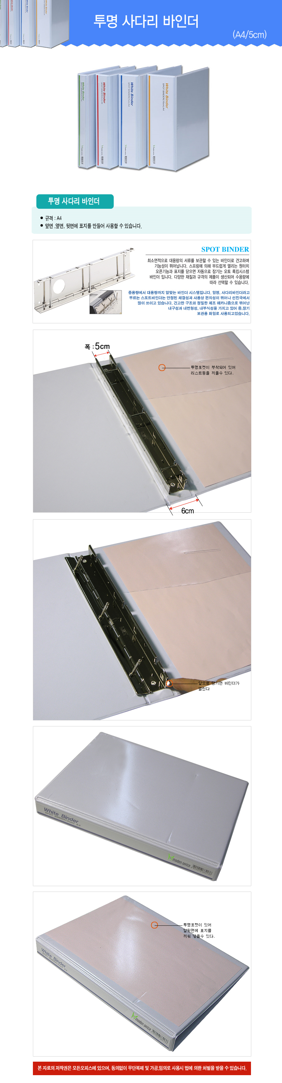 모든오피스)백색투명사다리바인더(PP/A4/5cm)