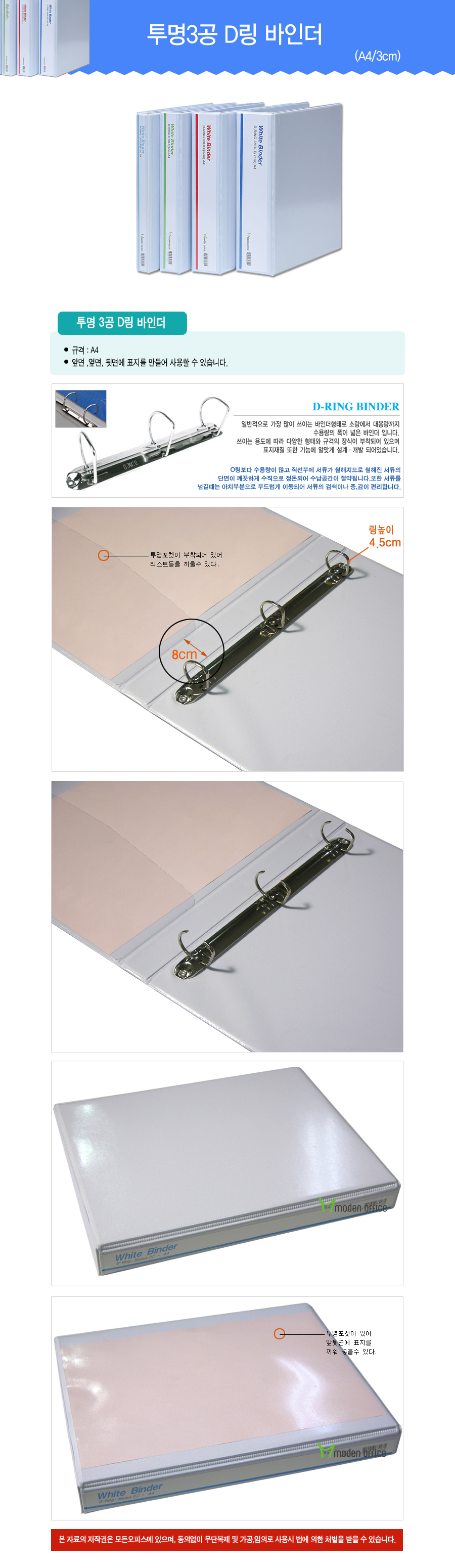 모든오피스)백색투명3공D링바인더(A4/3cm)