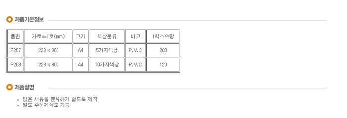 | 품명 및 모델명 | 아톰 화일인덱스 A4 (5분류,PVC) F207 |