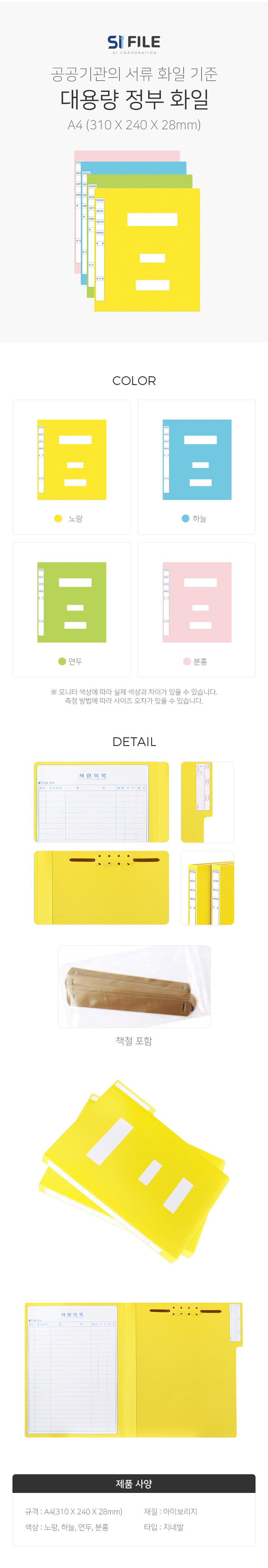 칼라정부화일 대용량(A4/노랑)-팩(10개입)