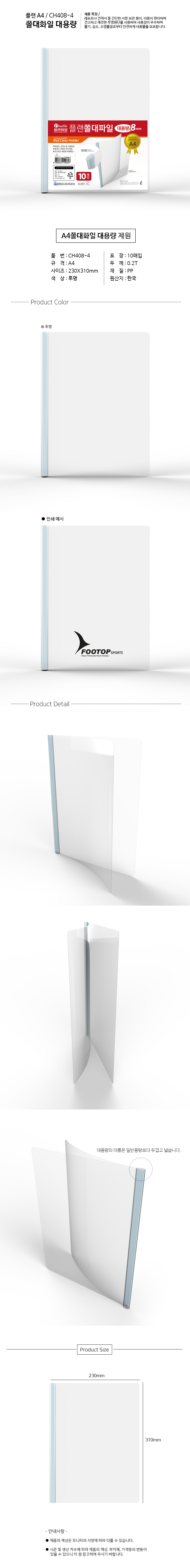 쫄대파일 /플랜쫄대파일/대용량/투명/10개팩/30개입 A4