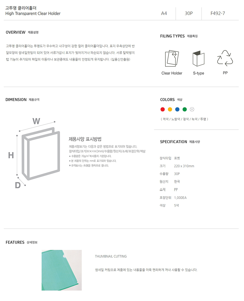| 품명 및 모델명 | 문화 투명홀더 A4 (투명,10권/SET) F492-7 |
