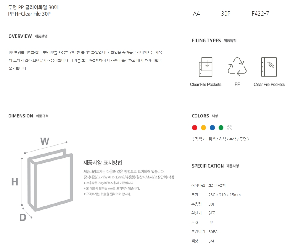 문화 투명PP 클리어화일 30매(녹색) / F422-7