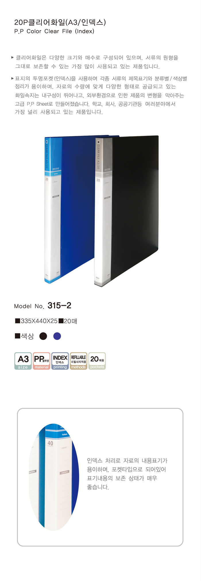 현풍)인덱스클리어화일(A3/20매/흑색)