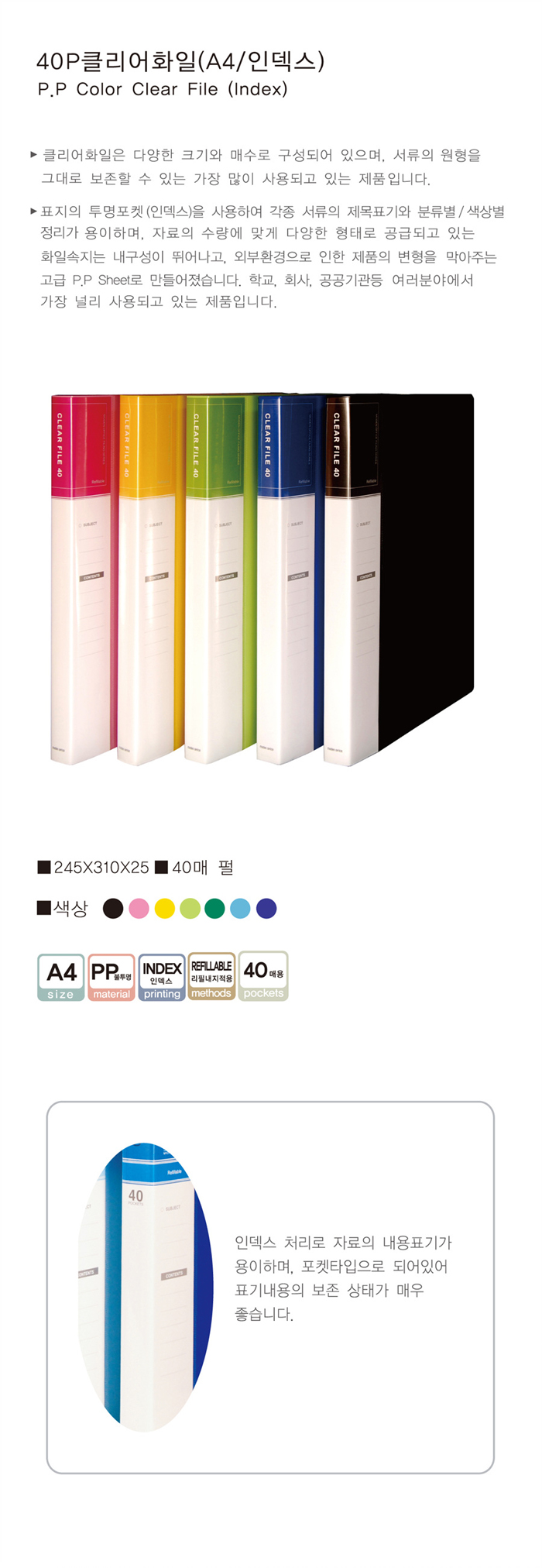 모든오피스)클리어화일인덱스(A4/40매/흑색)