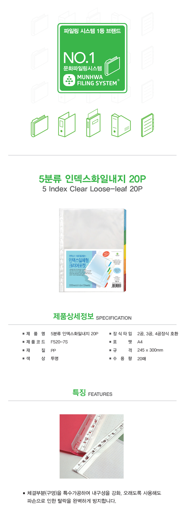 문화 인덱스 리필내지 F520-7s(20매/팩)
