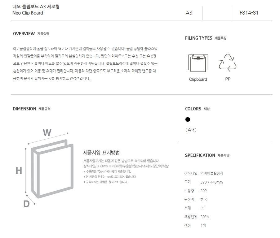 문화)네오클립보드 A3(세로형/F814-81)