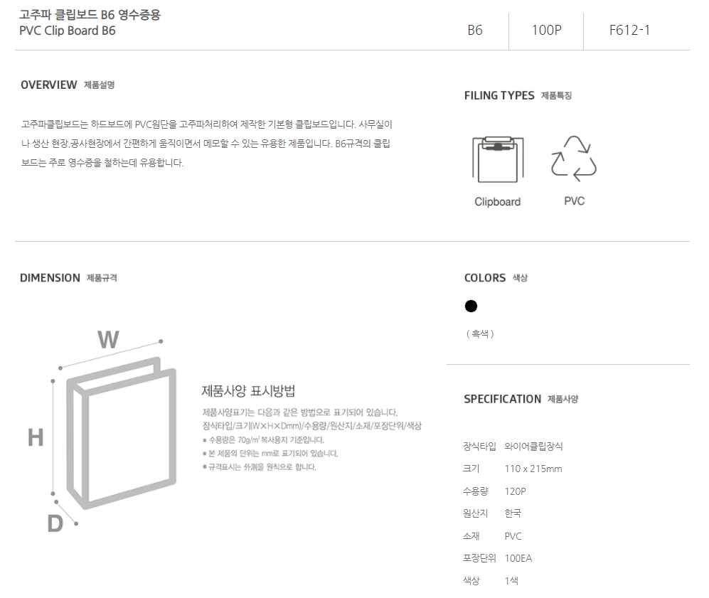 문화)고주파클립보드(흑색/B6/F612-1/영수증용/펜꽂이형)