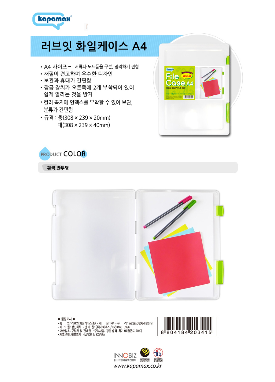 | 품명 및 모델명 | 플라스틱 화일케이스 A4 (폭20mm) |