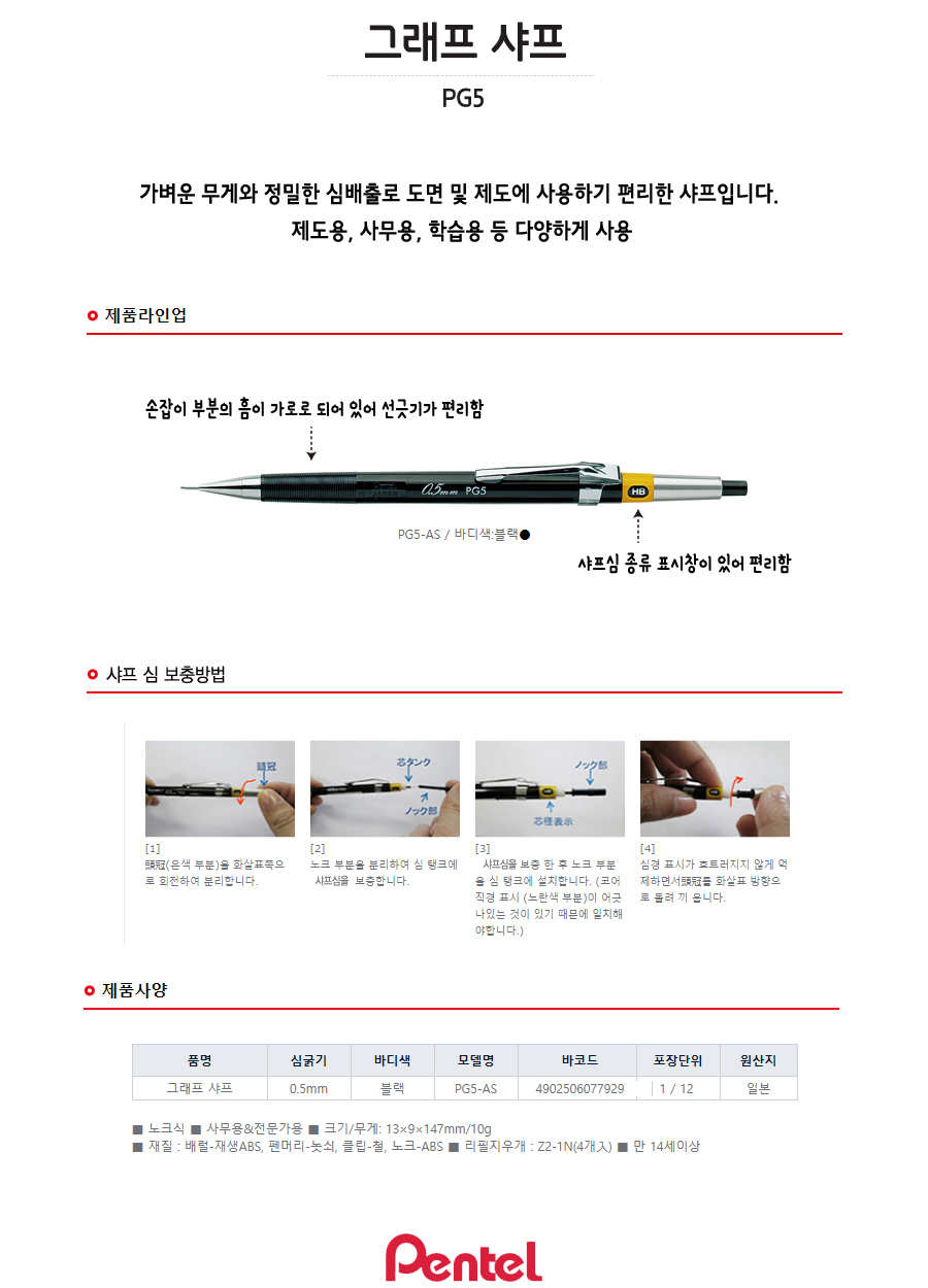 | 품명 및 모델명 | 펜텔 PG5 제도샤프 0.5 |