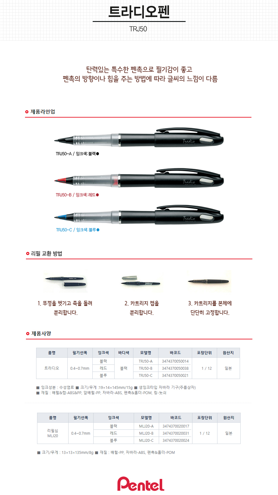 | 품명 및 모델명 | 펜텔 트라디오 수성펜 (적색) TRJ50-B |