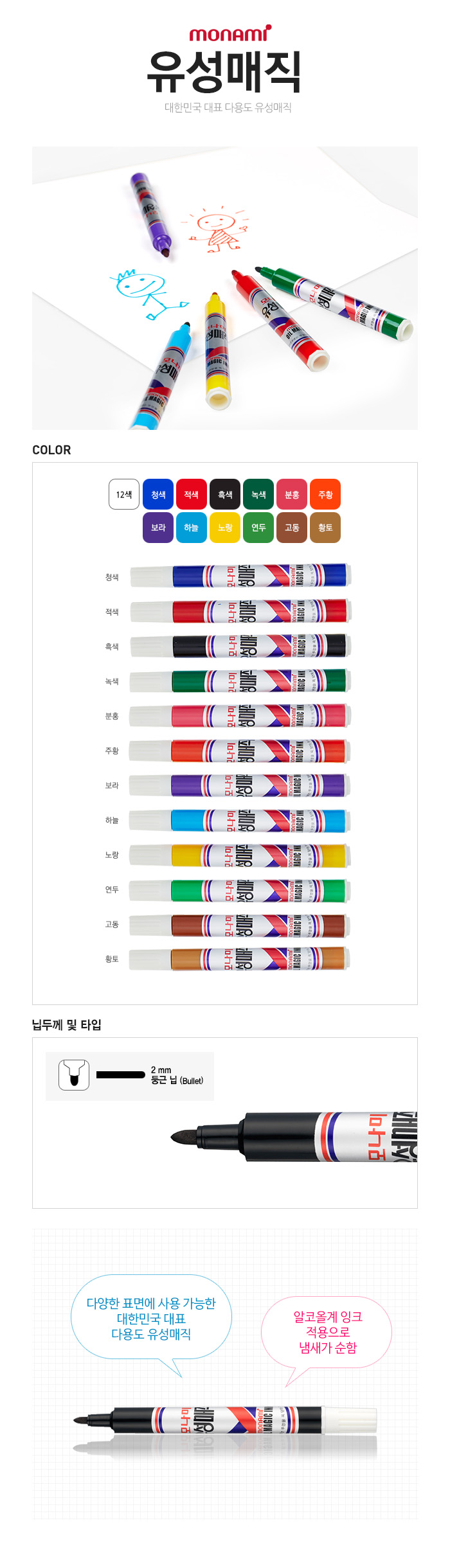 | 품명 및 모델명 | 모나미 유성매직 12색 세트 |